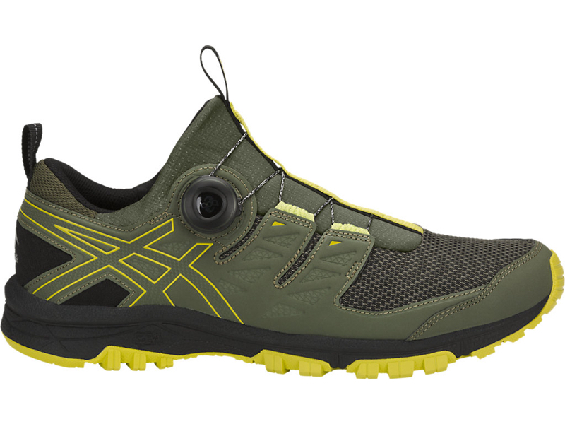 Der GEL-FujiRado verfügt über symmetrische mediale und laterale Stabilitätseinsätze, die unter den anspruchsvollen Trail-Bedingungen für einen zielgerichteten Halt im Mittelfußbereich sowie am Absatz sorgen. Durch die Mono-Socken-Konstruktion lässt sich dieser Schuh leicht anziehen. Die Sprengung am Absatz von 8 mm hält den Fuß in einer natürlichen Stellung. Spezielle Bergauf- und Bergablaufstollen sorgen für Traktion und Grip auf steinigen Oberflächen.